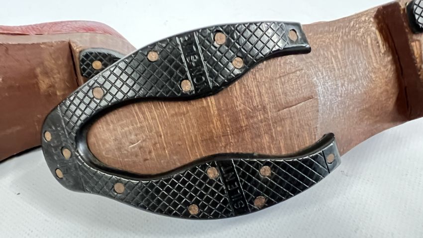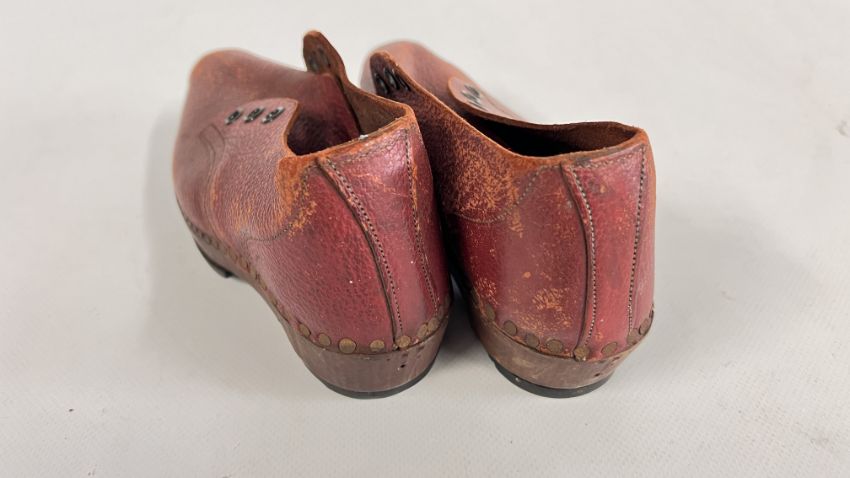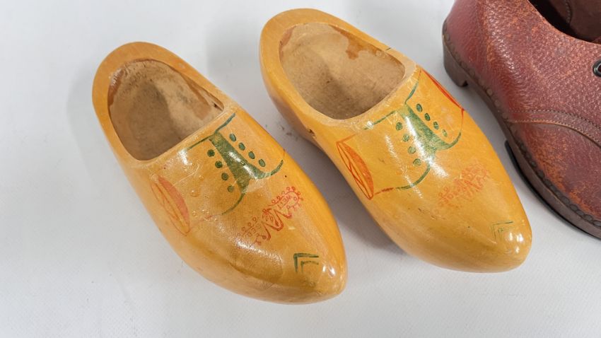 TWO VINTAGE PAIRS OF CLOGS TO INCLUDE LEATHER EXAMPLES.