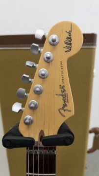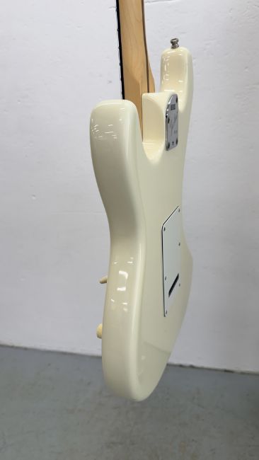 A FENDER STRATOCASTER JEFF BECK ELECTRIC LEAD GUITAR, MODEL BECK STRATOCASTER OWT, CREAM BODY, ROSEWOOD NECK, MADE IN USA, SERIAL No. US23089022, MODEL 0119600805, MANUFACTURED 01/2024, COMPLETE WITH ORIGINAL FENDER HARD TRANSIT CASE AND HERCULES GUITAR STAND - SOLD AS SEEN.