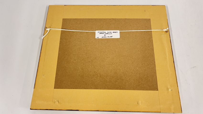 A FRAMED AND MOUNTED OIL ON BOARD TITLED IN COMING DUCK HORSEY MARSH BEARING SIGNATURE JAMES ALLEN 19 X 13CM.