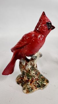 TWO BESWICK BIRD FIGURES CHICKADEE 929 AND A RED CARDINAL 927, BOTH WITH ROUND BESWICK BACK STAMPS.