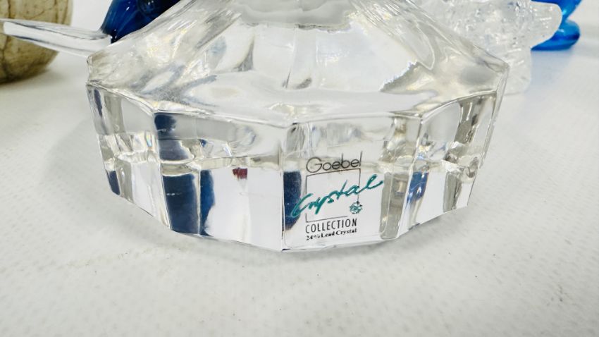 A GROUP OF ASSORTED ART GLASS TO INCLUDE CAITHNESS PAPERWEIGHT, GOEBEL, SIGNED EXAMPLES, ETC.