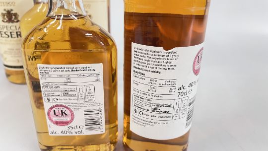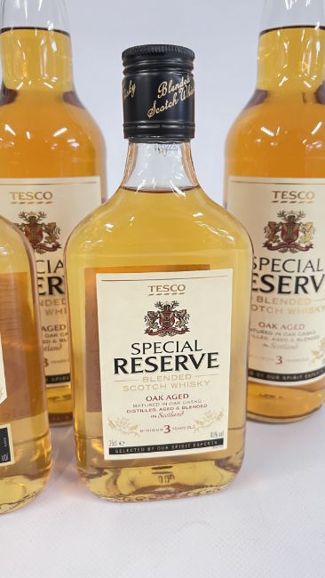 3 X 70CL BOTTLES OF TESCO SPECIAL RESERVE BLENDED SCOTCH WHISKY OAK AGED MINIMUM 3 YEARS OLD + A FURTHER 2 X 35CL BOTTLES.