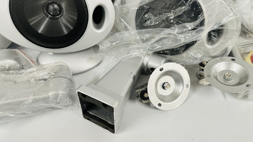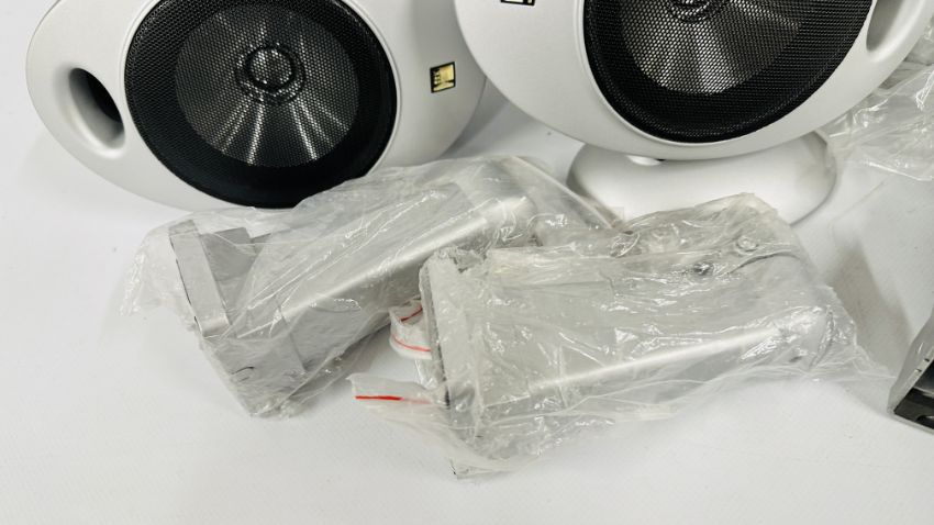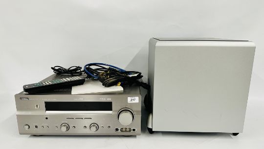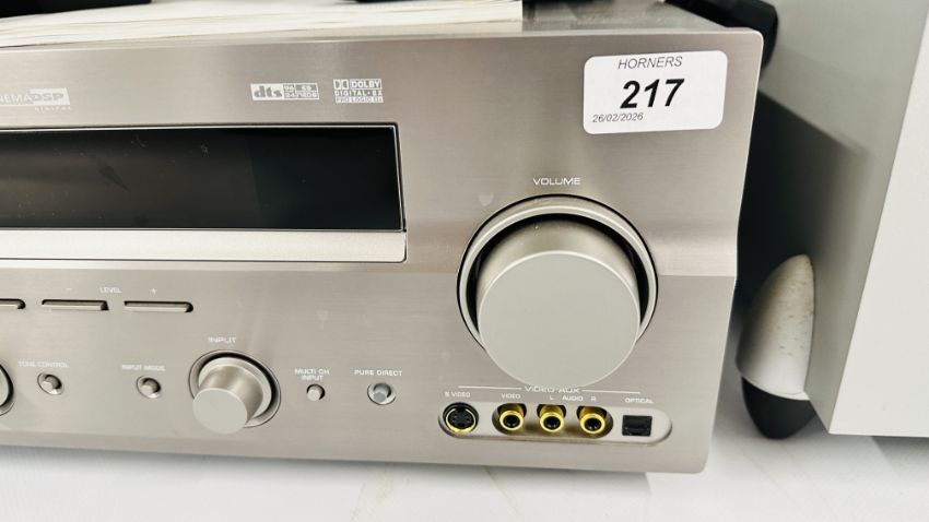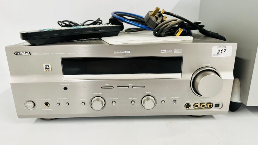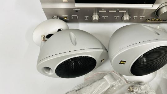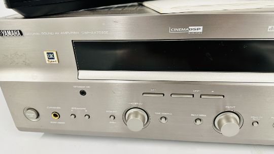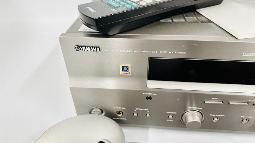 YAMAHA NATURAL SOUND AV AMPLIFIER DSP-AX759SE COMPLETE WITH INSTRUCTION BOOK AND REMOTE PLUS KEF 5.1 SPEAKER SYSTEM TO INCLUDE PSW 2010 KHT 2005.2 PSW 2010 POWERED SUBWOOFER WITH INSTRUCTIONS (NO CABLE), FIVE KHT 2005.2 HTS 2001 SATELLITE SPEAKERS, WALL MOUNT HARDWARE AND CABLES - SOLD AS SEEN.