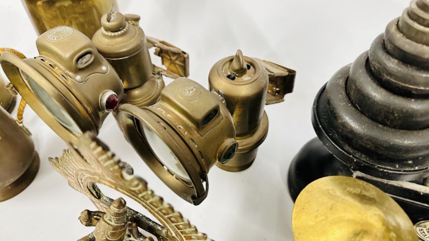 GROUP OF VINTAGE METALWARE TO INCLUDE SCALES, LAMPS, VASES, ETC + ASSORTED VINTAGE MAPS.