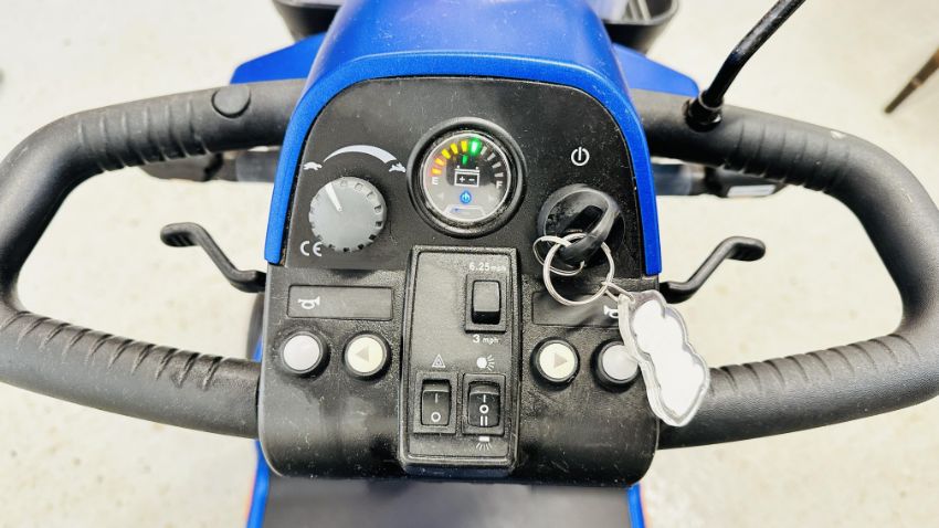 PRIDE COLT DELAY 2.0 MOBILITY SCOOTER WITH KEY, CHARGER AND INSTRUCTIONS - SOLD AS SEEN.