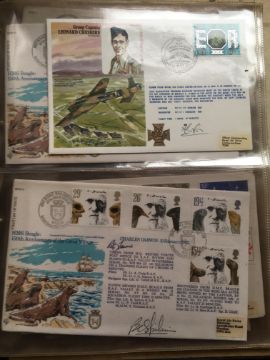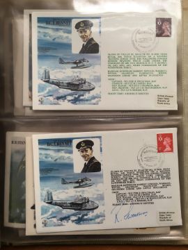 SIGNED COVERS: A COLLECTION MAINLY RAF TYPE COVERS IN TWO ALBUMS, 48 BEING SIGNED INCLUDING ARTHUR T. HARRIS, WILLIAM REID V.C., OTHERS INCLUDING LIMITED EDITIONS. (75 COVERS).
