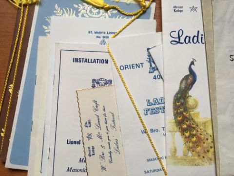 EPHEMERA: FILE BOX MASONIC PAMPHLETS, EVENT BROCHURES, MEDALS ETC.