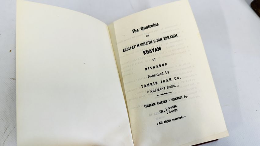 ILLUSTRATED POEM BOOK TITLED "THE QUATRAINS OF ABOLFAT H GHIA TH-E-DIN EBRAHIM KHAYAM OF NISHABUR".