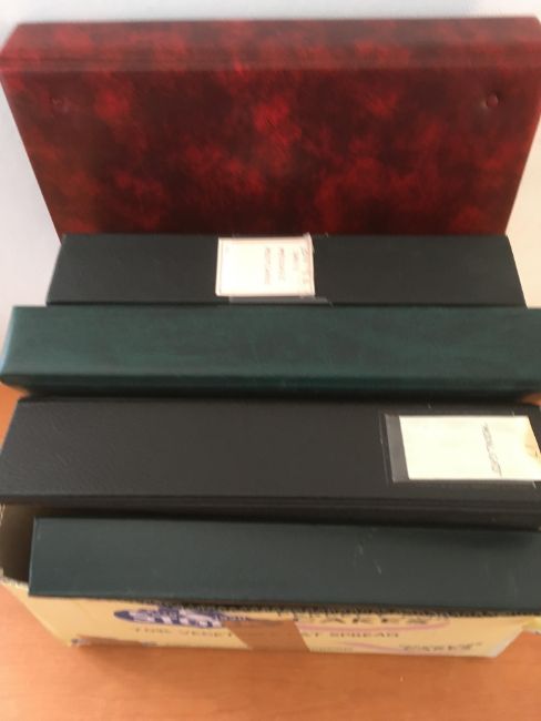 POSTCARDS: BOX WITH MAINLY OLDER CARDS IN FIVE ALBUMS, MOONLIGHT, DAVIS MESSAGE CARDS, UK VIEWS ETC.