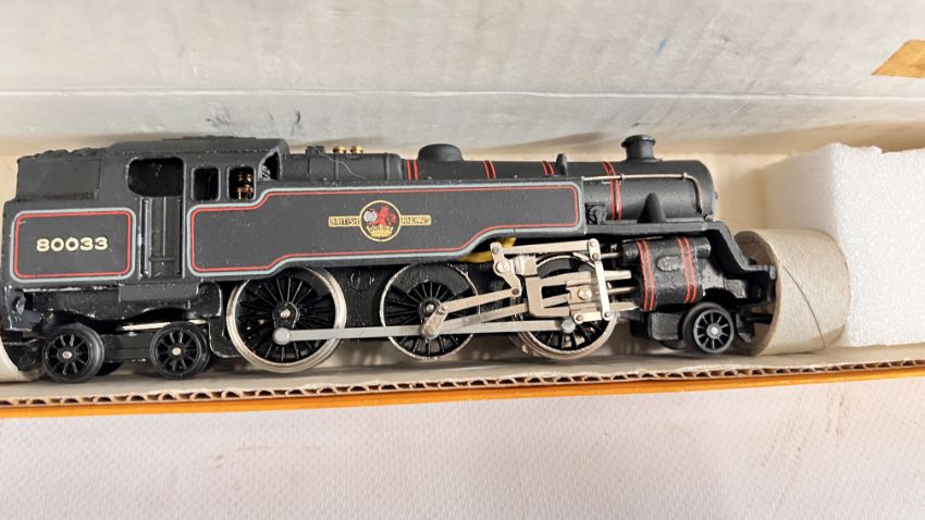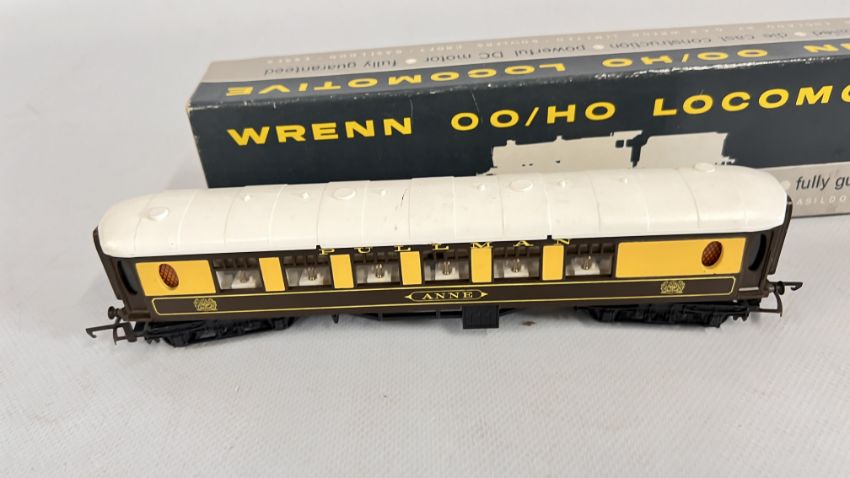 A WRENN 00 / HO LOCOMOTIVE NO. 2218 2-6-4 B.R TANK IN ORIGINAL BOX WITH RELATED PAPERWORK + 3 X PULLMAN COACHES.