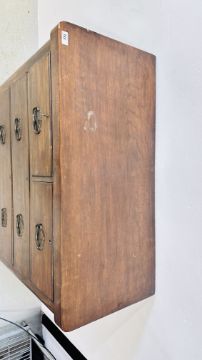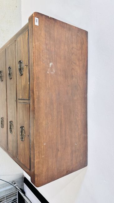 ANTIQUE STAINED PINE TWO OVER 3 DRAWER CHEST, W 93CM.