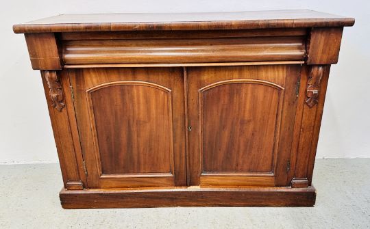 A VICTORIAN MAHOGANY CHIFFONIER WITH FRIEZE DRAWER (MISSING BACK UPSTAND), WIDTH 119CM.