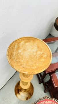 A GROUP OF OCCASIONAL FURNITURE TO INCLUDE A DRUM TABLE, SOFA TABLE, NEST OF 3 GLASS TOP TABLES, METAL CRAFT STOOL ETC.