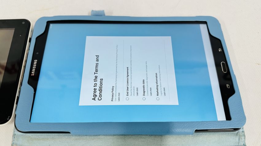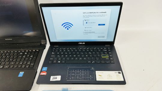 ASUS E410M LAPTOP WITH CHARGER, LENOVO B50 LAPTOP WITH CHARGER, SAMSUNG GALAXY SMT-580 TABLET WITH CHARGER AND 1 OTHER TABLET - SOLD AS SEEN.
