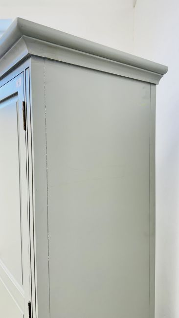 A MODERN GREY FINISH DOUBLE WARDROBE WITH TWO DRAWERS TO BASE, WIDTH 110CM.