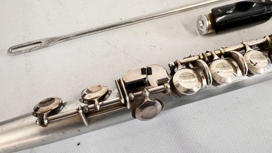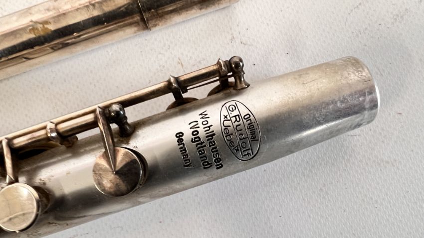 A VINTAGE GERMAN CLARINET IN ORIGINAL CASE MARKED G. RUDOLF.