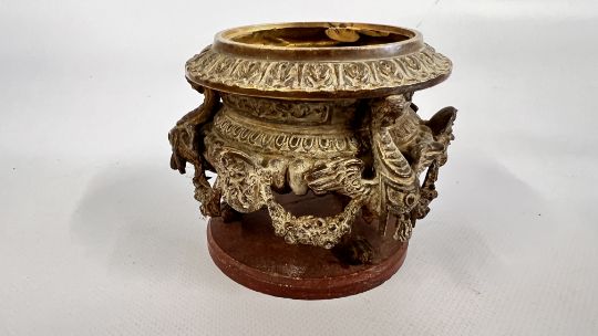 A VINTAGE DECORATIVE CAST METAL CASKET & A BRONZE KORO WITH COVER (PROBABLY JAPANESE)