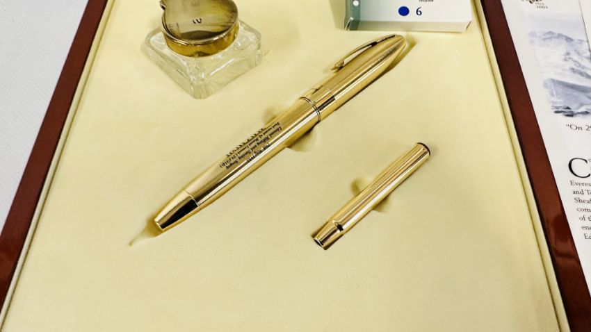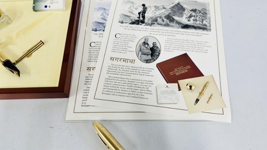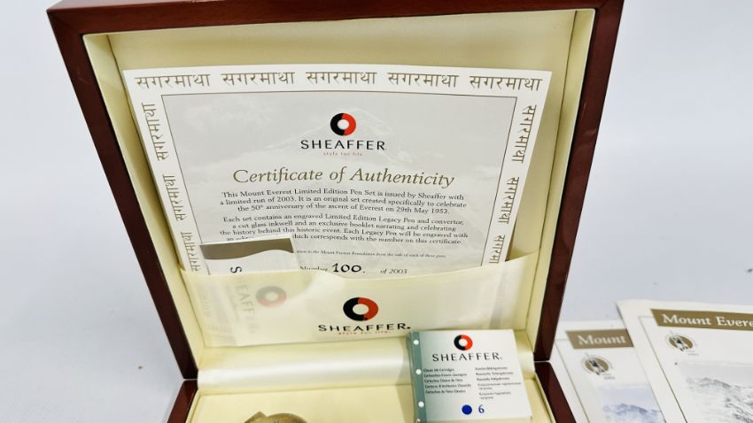 A "SHEAFFER" LIMITED EDITION 100/2003 MOUNT EVEREST PEN SET IN ORIGINAL FITTED PRESENTATION BOX WITH CERTIFICATE OF AUTHENTICITY.