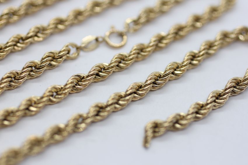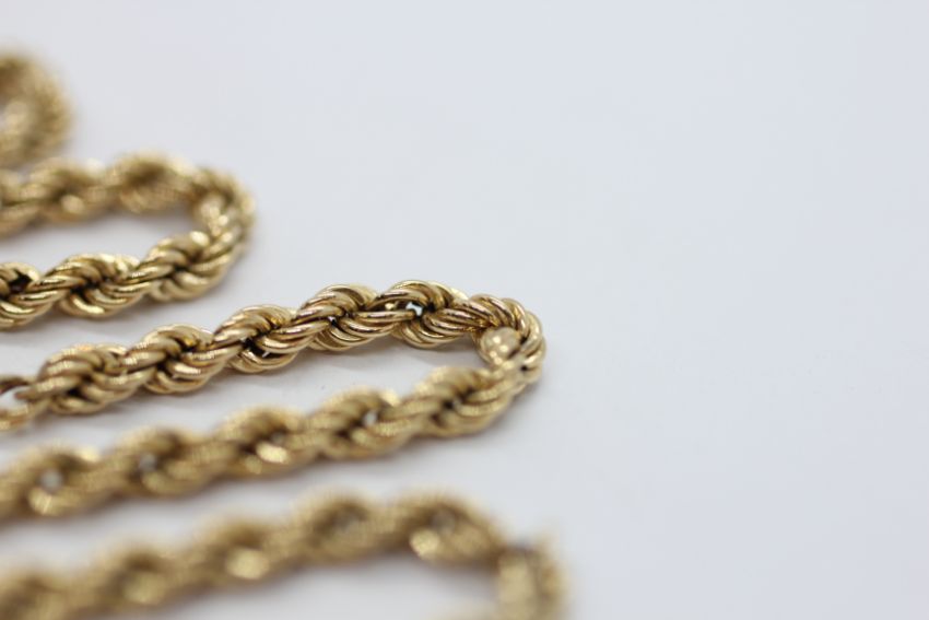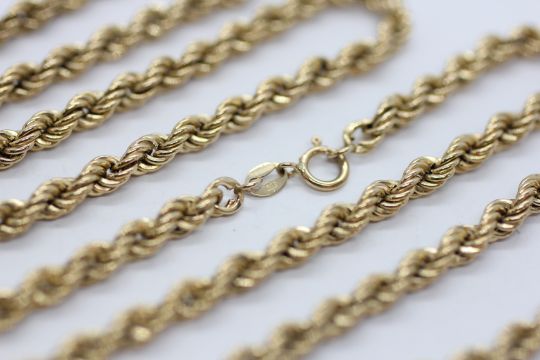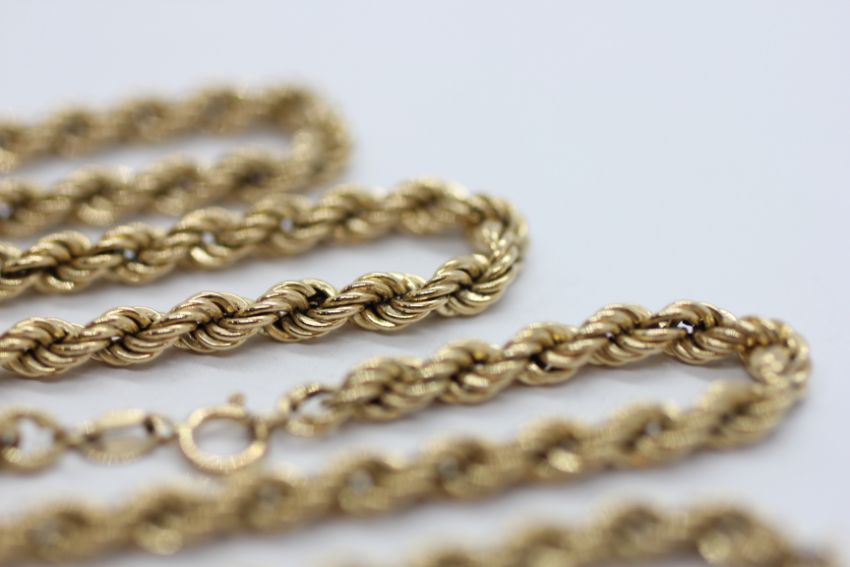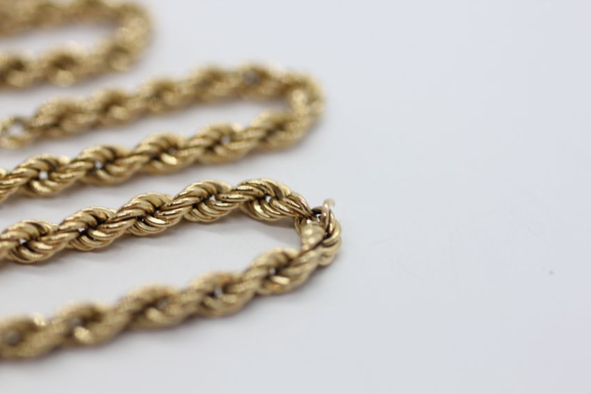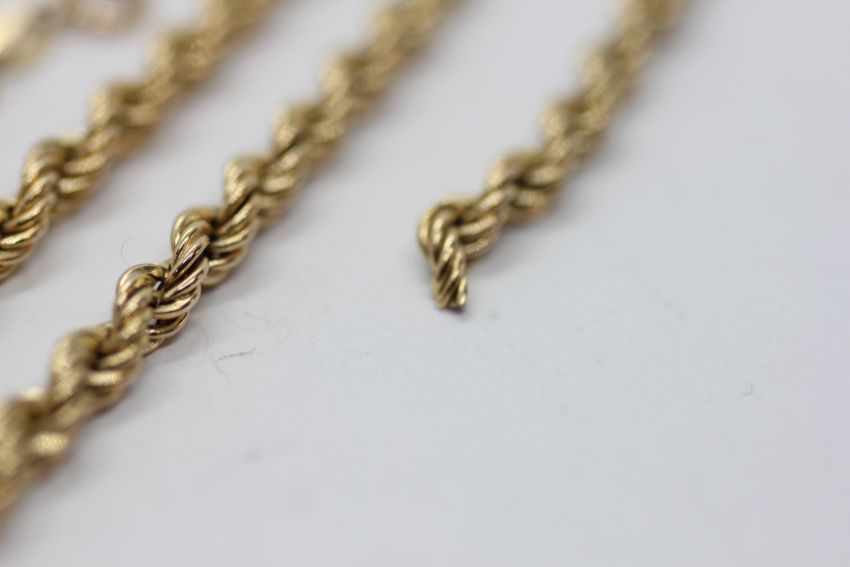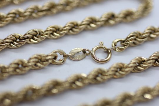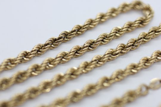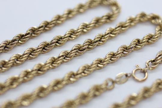 A 9CT GOLD ROPE TWIST NECKLACE A/F, L 75CM.