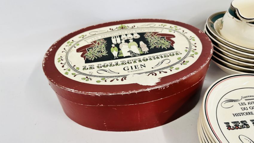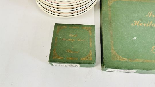 18 PIECES OF KELTCRAFT DINNER WARE DESIGNED BY NORITAKE + A BOXED SET OF 6 "GIEN" LE COLLECTIONNEURS DINNER PLATES + 6 MATCHING SIDE PLATES UNBOXED, BOXED SET OF 6 IRISH HERITAGE SERIES PLACE MATS BY PIMPERNEL AND A BOXED SET OF MATCHING COASTERS.