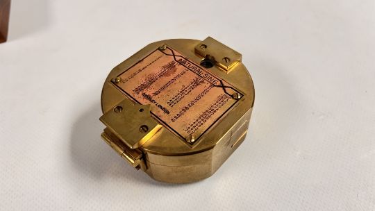 THREE REPRODUCTION HARDWOOD CASED NAUTICAL INSTRUMENTS - SEXTANT, BOSSONS WHISTLE AND COMPASS.