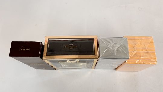 A GROUP OF FRAGRANCES TO INCLUDE 100ML REVLON "LASTING" COLOGNE SPRAY, 100ML REVLON "FIRE & ICE COO" COLOGNE SPRAY AND 100ML NEXT SIGNATURE GOLD EAU DE TOILETTE SEALED IN ORIGINAL PRESENTATION BOXES + 100ML "PUIG" QUORUM EAU DE TOILETTE NATURAL SPRAY, BOXED (AS CLEARED).