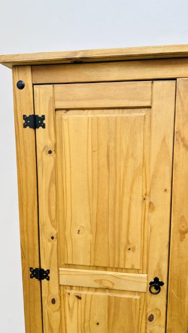 A MEXICAN PINE COMBINATION WARDROBE, WIDTH 110CM.