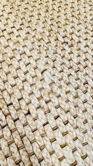 A GROUP OF THREE WOVEN RUGS INCLUDING CIRCULAR, RUNNER, ETC, THE LARGEST 200CM X 290CM.