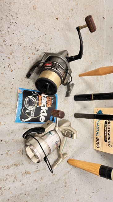 SURF CASTING ROD: BUTTERWORTH (AUSTRALIA) COASTAL 4.26 M LONG COMPLETE WITH A BUTTERWORTH COASTAL 8000 REEL + SURF CASTING ROD: ABU GARCIA (SWEDEN) SURF STIK 4.2 M LONG COMPLETE WITH A RYOBI PROJECT 8000 REEL.