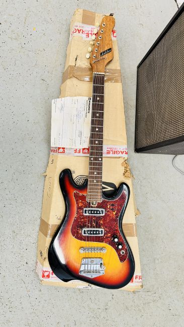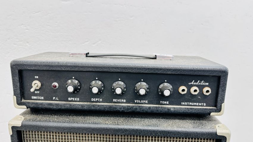 A VINTAGE 1960's "AUDITION" AMP ALONG WITH AN "AUDITION" ELECTRIC GUITAR - SOLD AS SEEN.