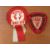 FOOTBALL MEMORABILIA: MANCHESTER UNITED 1977 F.A. CUP ROSETTE AND CLOTH BADGE, ALSO SIX VOLUMES OF MODERN POSTCARDS.