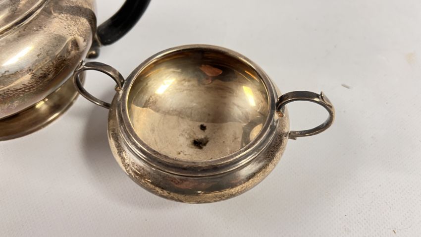 AN ANTIQUE SOLID SILVER 3 PIECE TEA SET, BIRMINGHAM 1918 RUBBED MAKERS MARK.